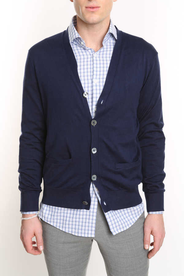 V-neck cardigan. Mother of pearl front button closure. Two dart pockets. Ribbed cuff and hem. 100% cotton. Hand wash. - Additional Information